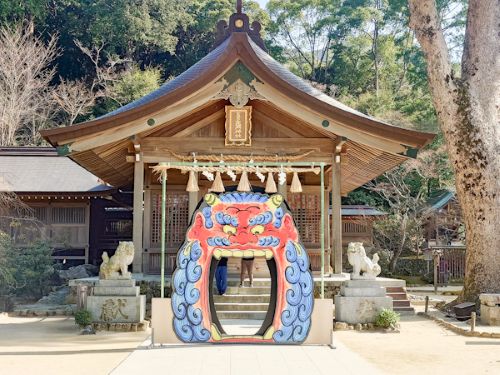 表が鬼、裏がおたふくになっており、ご参拝前に鬼門をくぐり鬼(災い)を祓い、